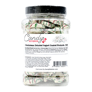 Candy Retailer Christmas Drizzled Yogurt Coated Pretzels 1 Lb Jar